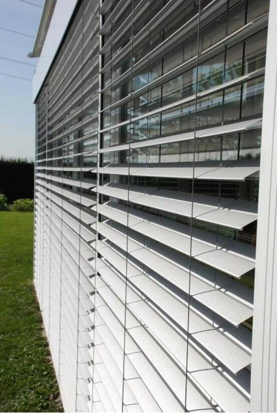 而當(dāng)應(yīng)用于室外遮陽時,歐式百葉可將大部分陽光熱能阻擋于戶外,同時讓可見光進(jìn)入室內(nèi),從而降低室內(nèi)空調(diào)能耗。同時配用智能化控制系統(tǒng)即可跟據(jù)每天的天氣狀況自動調(diào)節(jié)進(jìn)入室內(nèi)的熱能,以達(dá)到最佳節(jié)能降耗的目的。